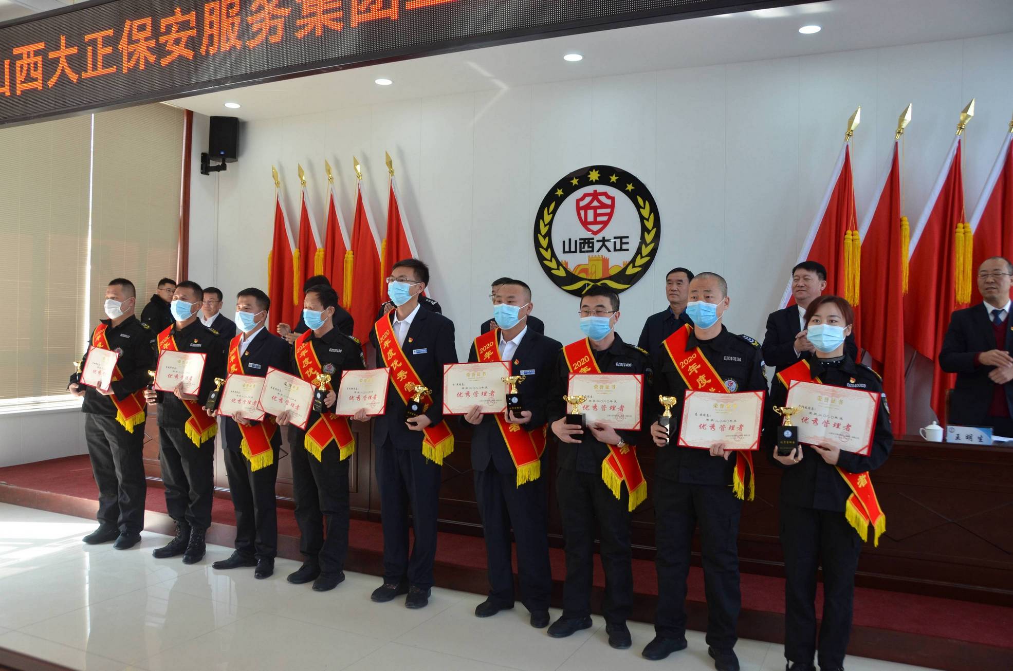 3月1日,山西大正保安服務集團有限公司召開2020年度總結表彰大會。市工信局(國資委)黨委委員、二級調(diào)研員劉建文,市公安局黨委委員、副局長馬新文出席會議。公司中層副職以上干部及受表彰的先進集體、先進個人代表共計120余人參加會議。