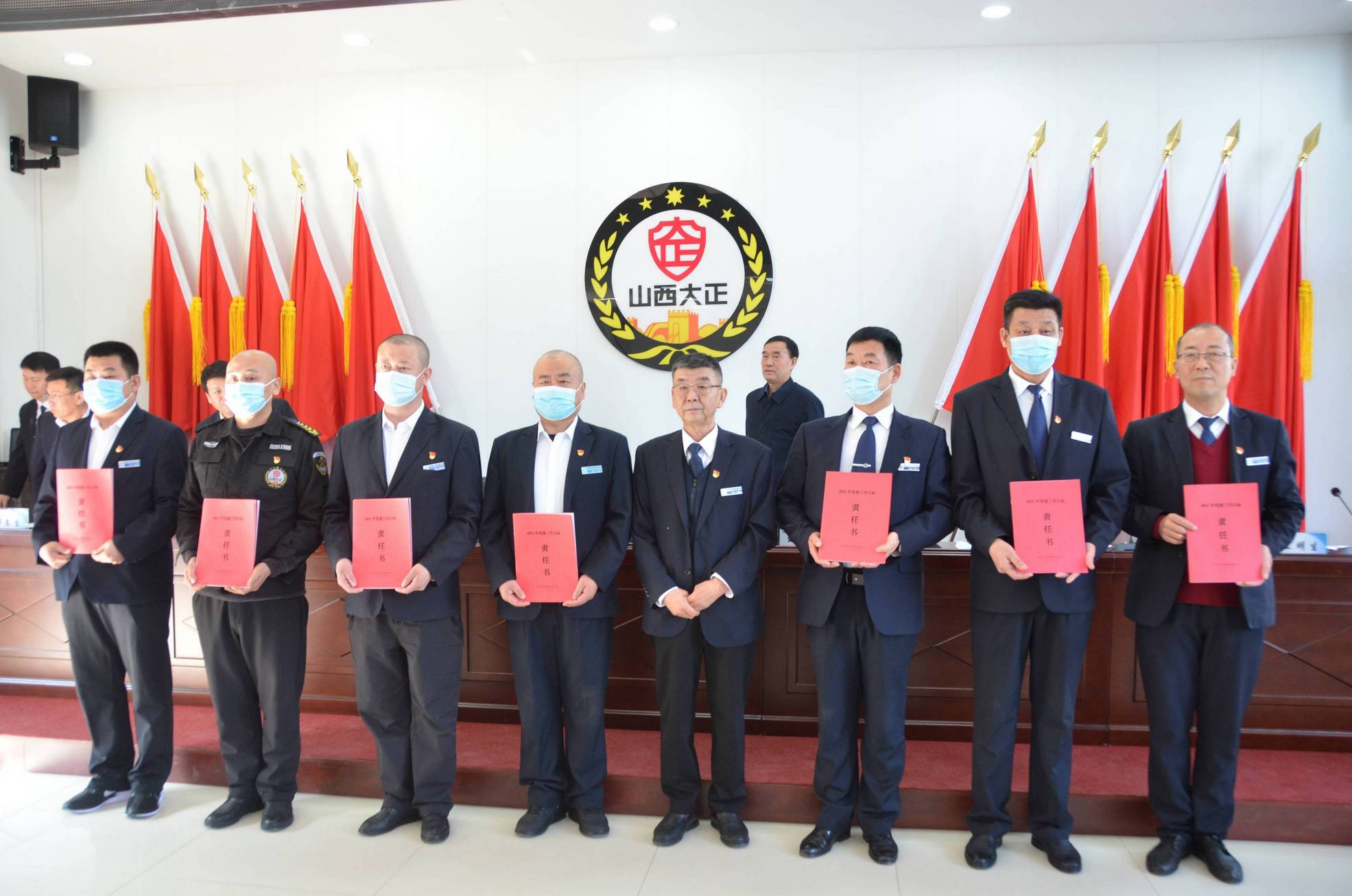 會上,黨委書記、董事長張躍生向公司各子公司、各部門、各黨支部負責人頒發(fā)了黨建目標責任書、黨風廉潔目標責任書,黨委副書記、總經(jīng)理趙培宏向公司各子公司、各部門負責人頒發(fā)綜合治理目標責任書、安全生產(chǎn)目標責任書。大會在《大正保安之歌》歌聲中圓滿落幕。