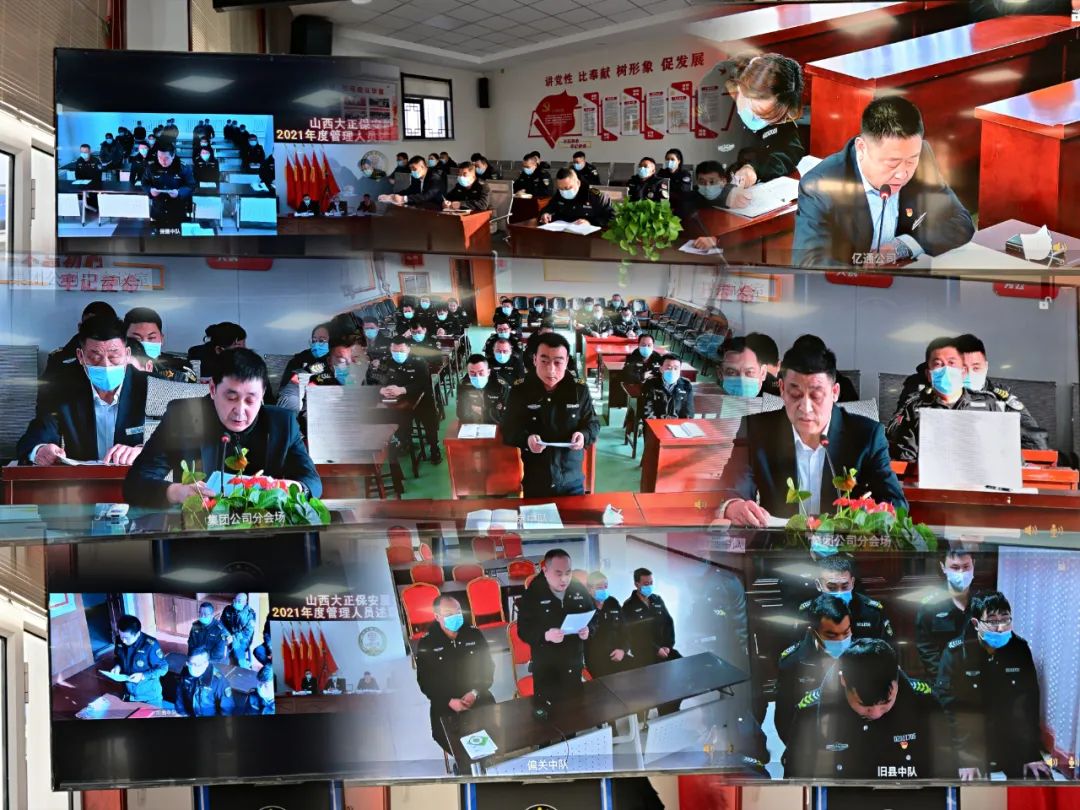 2022年1月8日-9日,山西大正保安服務(wù)集團(tuán)有限公司召開2021年度管理人員述職述廉報告視頻會議,大會主會場設(shè)立在總部會議室,黨委副書記、總經(jīng)理趙培宏出席會議并作重要講話,黨委副書記、副總經(jīng)理陳志平主持會議,公司黨政領(lǐng)導(dǎo)班子成員出席會議,各部門負(fù)責(zé)人及員工代表參會,各分公司、子公司、各縣市基層中隊(duì)共計21個分會場以視頻方式參會。