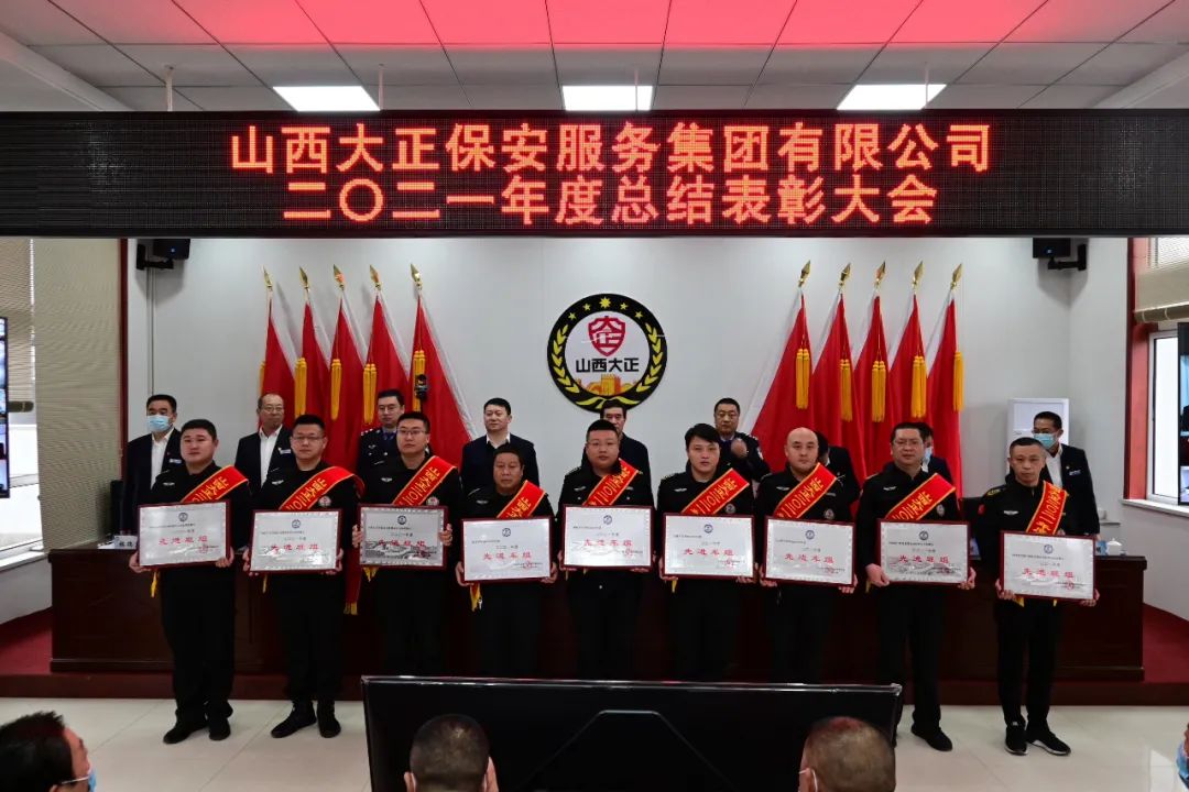 王明生宣讀《山西大正保安服務(wù)集團(tuán)有限公司二0ニ一年度“雙先”評(píng)比表彰決定》。隨后進(jìn)行了頒獎(jiǎng)儀式。對(duì)受表彰的2021年度先進(jìn)單位、先進(jìn)集體、安全標(biāo)兵團(tuán)隊(duì)、新聞報(bào)道先進(jìn)單位、先進(jìn)班(車(chē)、庫(kù))組、優(yōu)秀管理者、先進(jìn)個(gè)人頒發(fā)獎(jiǎng)牌獎(jiǎng)狀證書(shū)。
