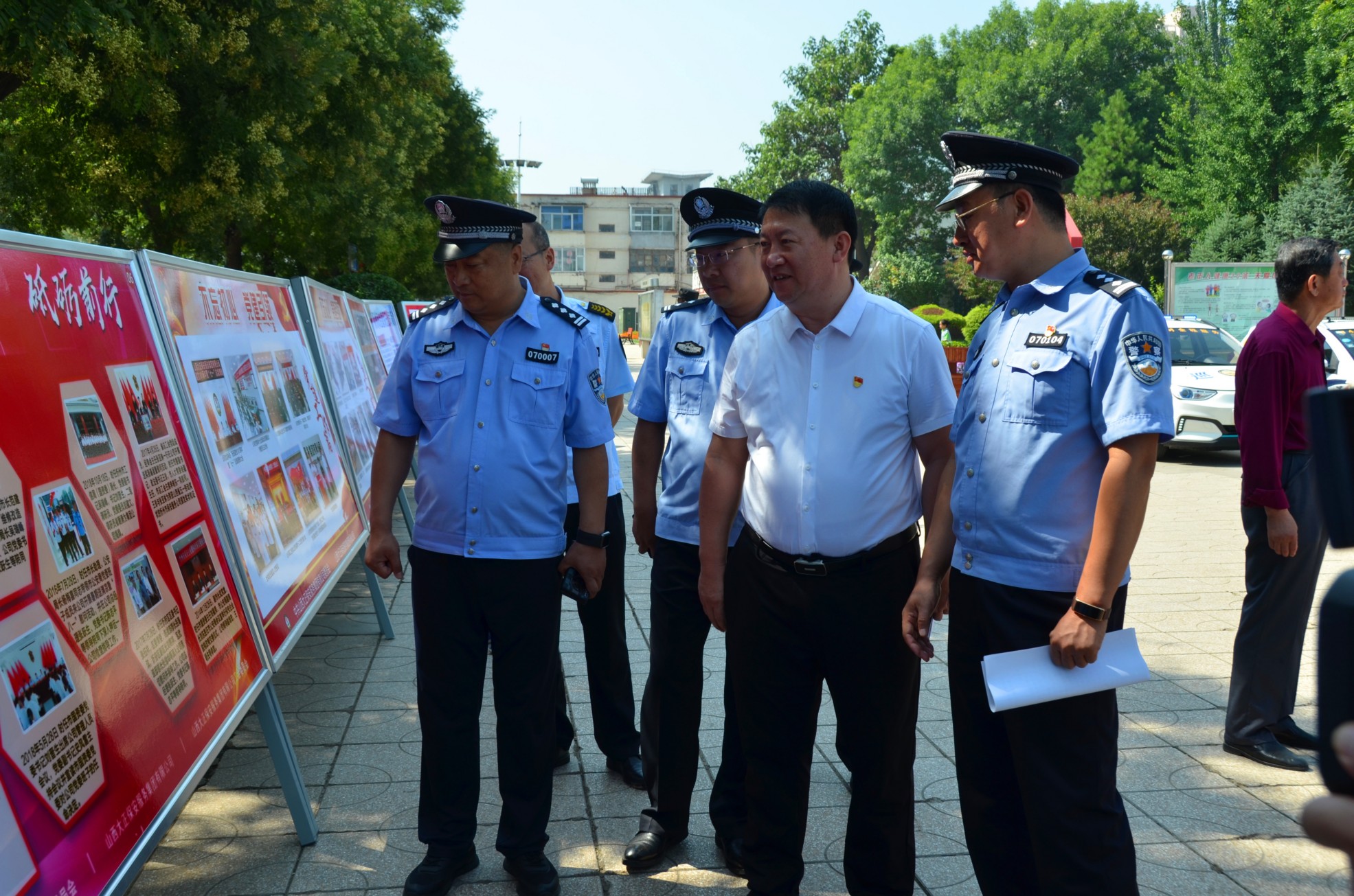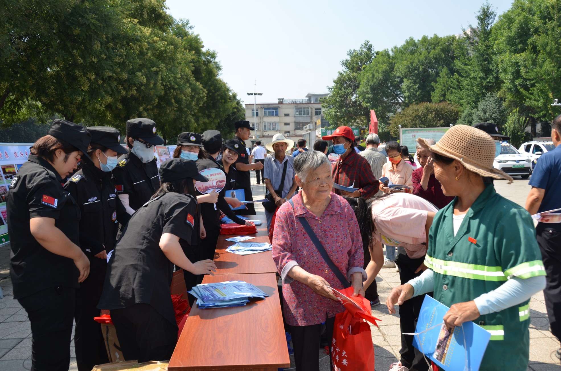 主題宣傳活動(dòng)后,領(lǐng)導(dǎo)們認(rèn)真觀(guān)看了宣傳展板。公司員工及時(shí)向過(guò)往行人發(fā)放宣傳彩頁(yè)及扇子、圍裙等禮品。