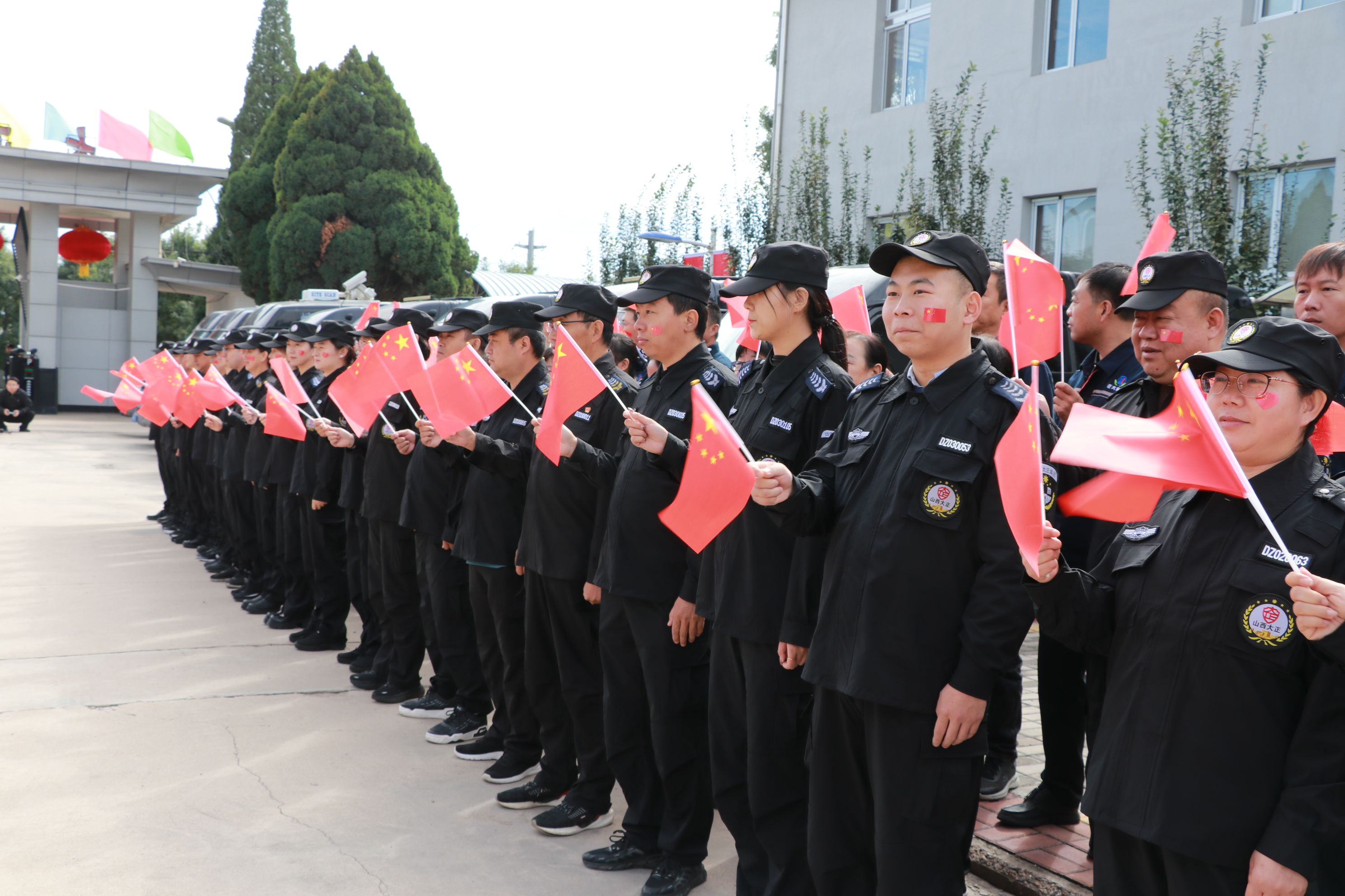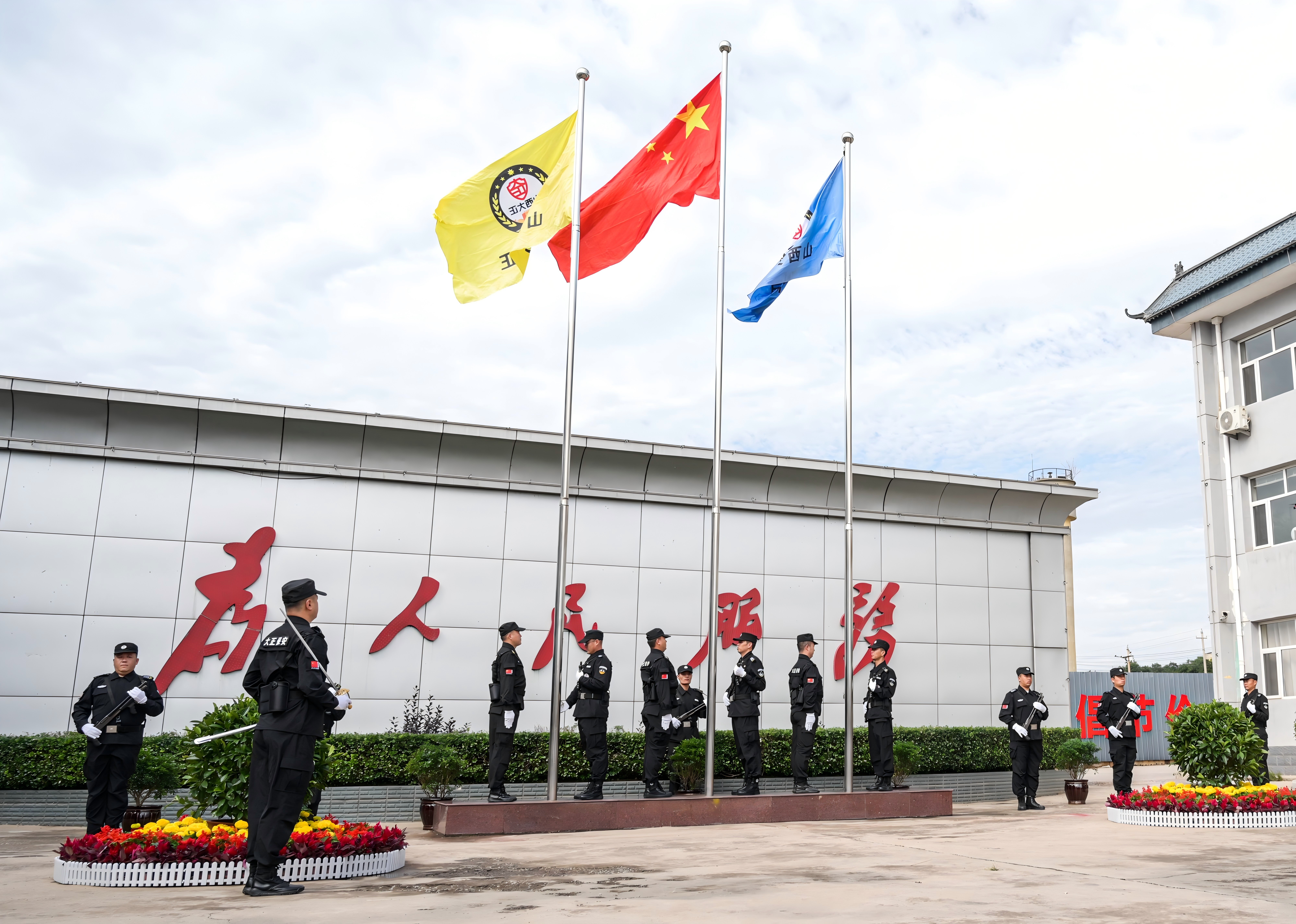 節(jié)日的公司院內(nèi)外,四周花團(tuán)錦簇,大門口燈籠高掛、彩旗飄揚(yáng),為節(jié)日增添了濃厚的喜慶氛圍。公司運(yùn)鈔車、巡邏車、運(yùn)兵車干凈整潔,排列在場(chǎng)地兩側(cè),升旗儀式更顯隆重。9時(shí)30分,集團(tuán)公司、各子公司領(lǐng)導(dǎo)和機(jī)關(guān)各部門、城區(qū)員工共300多人整齊列隊(duì),懷著激動(dòng)的心情,手持小國(guó)旗,臉上貼著愛國(guó)貼紙、洋溢幸福的笑容,眼神中充滿了對(duì)祖國(guó)的熱愛和對(duì)升旗儀式的期待。