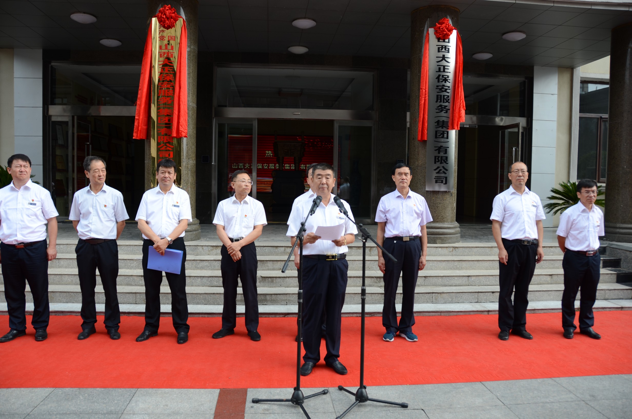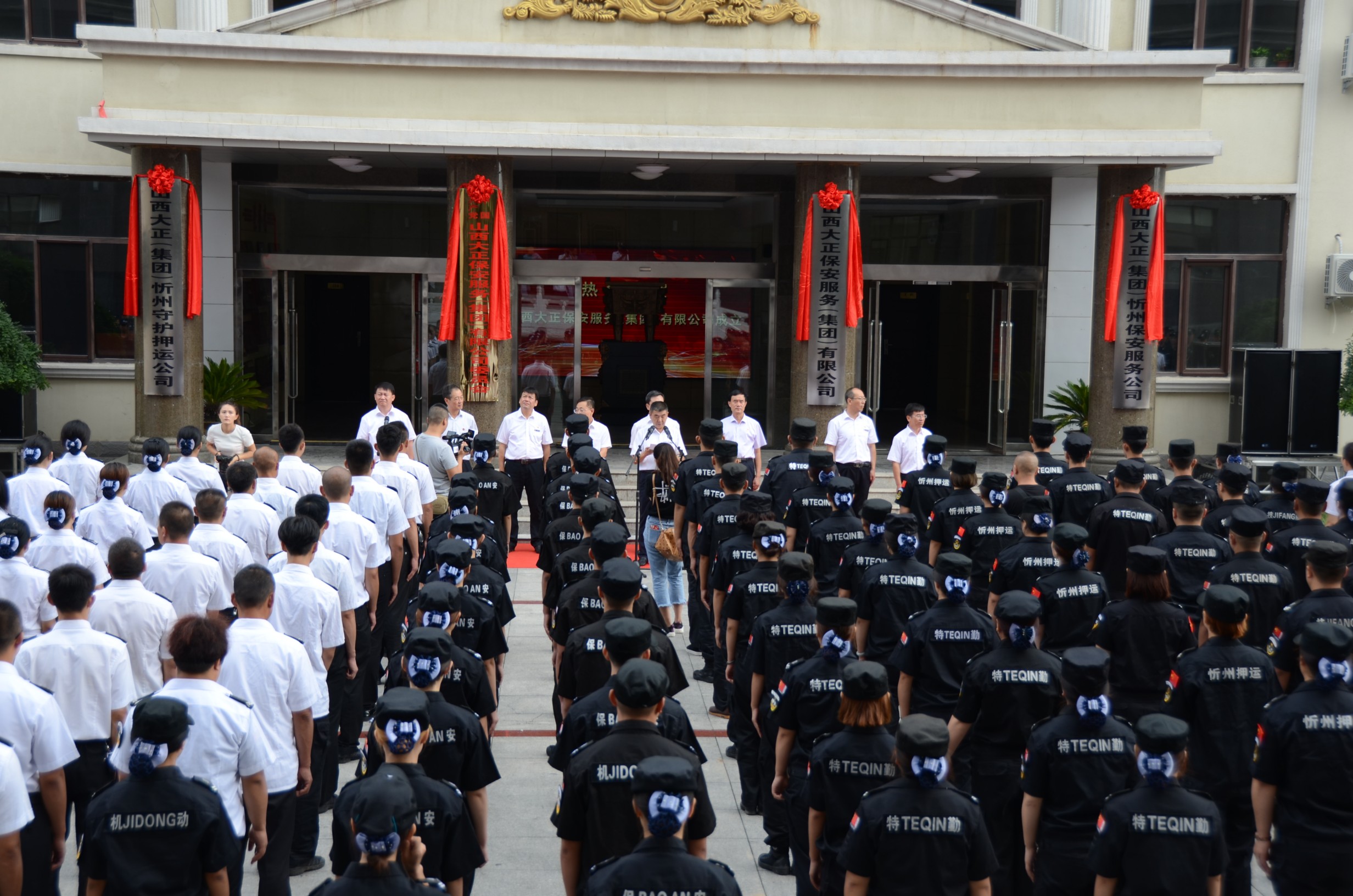8月18日上午,在山西大正保安服務(wù)(集團(tuán))有限公司喬遷新址之際,舉行了盛大的揭牌儀式。儀式上,首先伴著《義勇軍進(jìn)行曲》的響起,全體人員行注目禮,莊嚴(yán)肅穆,旗手們著裝整齊,邁著矯健的步伐,護(hù)著鮮艷的五星紅旗入場舉行升國旗儀式。市國資委主任吳瑞峰、黨委書記劉晉生、紀(jì)檢書記岳玉亮、調(diào)研員劉建文等領(lǐng)導(dǎo)同志出席,公司黨委書記、董事長、總經(jīng)理張躍生攜黨政領(lǐng)導(dǎo)班子,以及機(jī)關(guān)各單位員工、基層單位員工代表共300余人參加了揭牌儀式。揭牌儀式甴公司黨委副書記、董事、副總經(jīng)理陳志平同志主持。