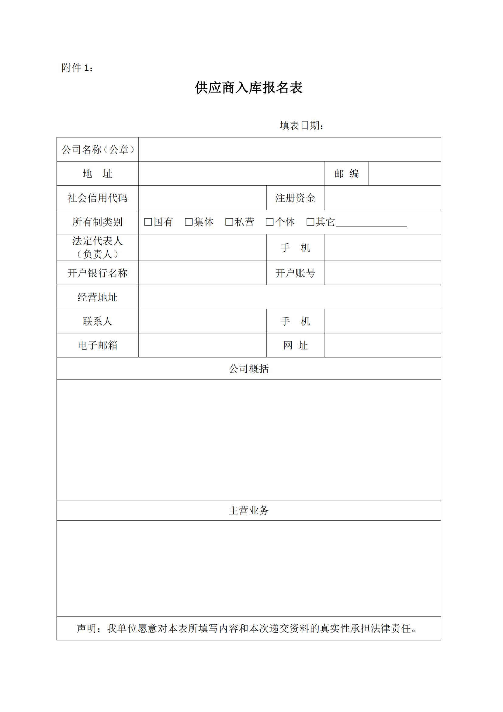 1、供應(yīng)商入庫報(bào)名表(見附件);