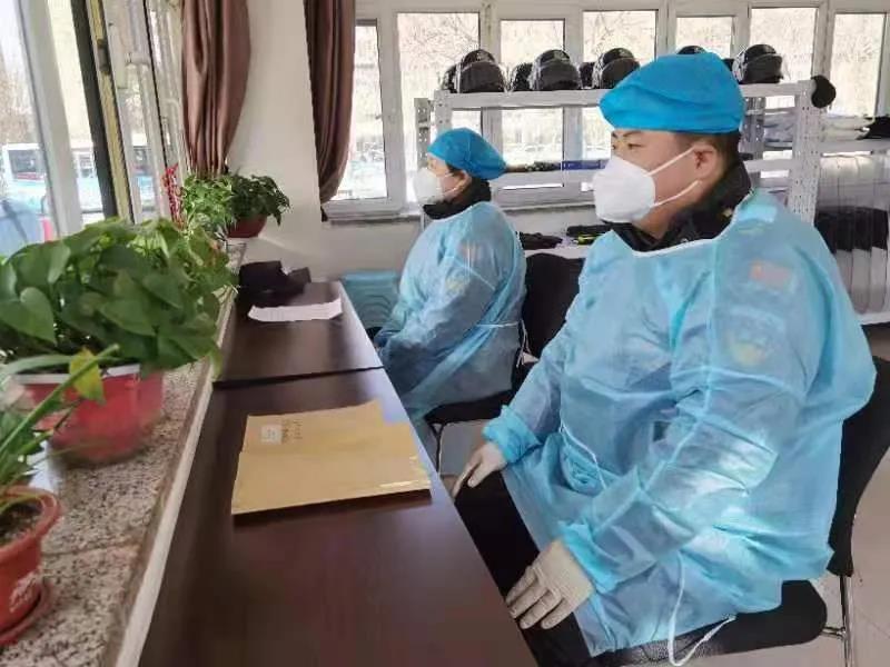 市醫(yī)院中隊(duì)全天負(fù)責(zé)從忻州市人民醫(yī)院西門(mén)、北門(mén)、東南門(mén)進(jìn)入院內(nèi)的所有人員行程碼、健康碼及車(chē)輛的檢查工作。他們冒著嚴(yán)寒、披星戴月,身著防護(hù)衣,嚴(yán)格履行職責(zé)。特別是新加入的幾名女隊(duì)員,巾幗不讓須眉,戴上口罩,安能辨出女兒身?