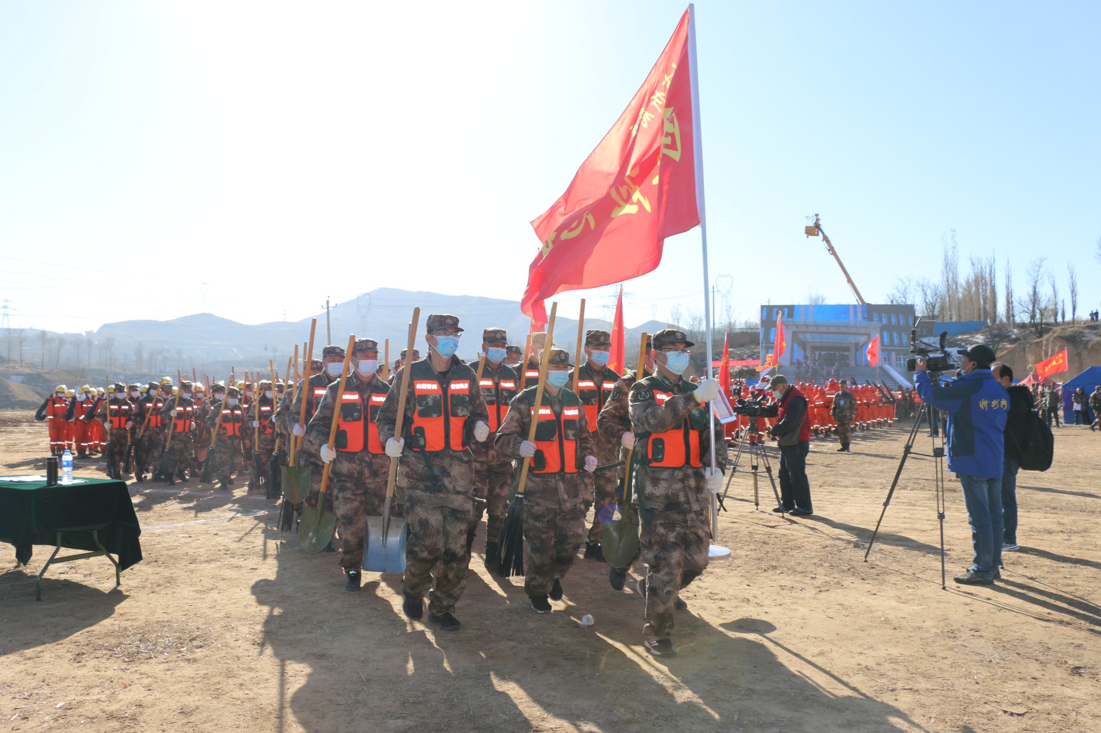 演練以11月11日9時(shí)50分,奇村鎮(zhèn)護(hù)林員在巡查中發(fā)現(xiàn)南高村南平梁山附近突發(fā)山火,風(fēng)力較大,火勢(shì)迅速蔓延至周邊林區(qū),將引發(fā)森林火災(zāi),嚴(yán)重威脅周邊林場和企業(yè)安全為背景,情況危急,我公司民兵應(yīng)急連接到火情指令后做到迅速集結(jié),奔赴火場進(jìn)行滅火作業(yè)。