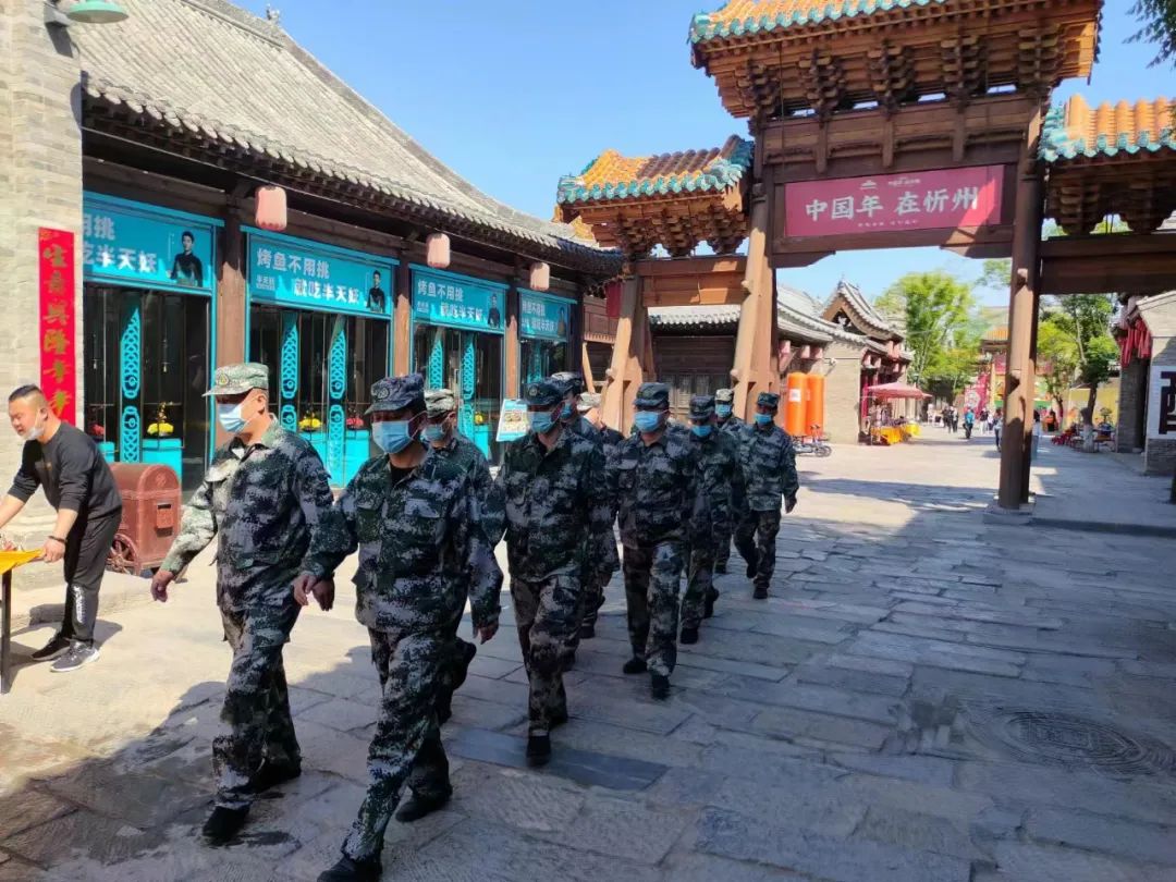 過節(jié)不忘使命,假期不忘戰(zhàn)備。五一勞動節(jié)假日期間,受上級指示,忻府區(qū)人武部駐忻州市正大物業(yè)管理有限公司民兵應(yīng)急連進行戰(zhàn)備執(zhí)勤,出動三個排次每日巡邏于忻州古城的大街小巷,協(xié)助景區(qū)做好安保維穩(wěn)巡邏和疫情防控工作,確保游客平安游玩。
