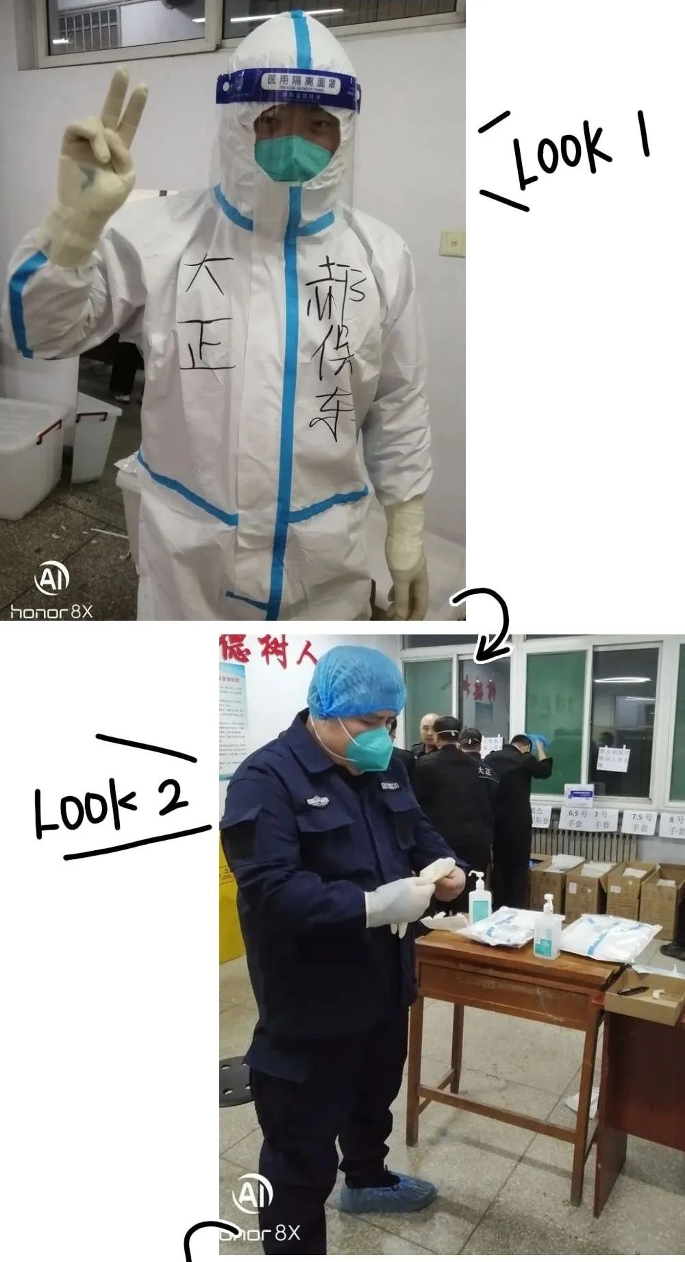 11月16日晚上6點,是他們第一次穿著防護服進入隔離區(qū)為隔離人員高風(fēng)險近距離服務(wù)。關(guān)向宇同志身體高大肥胖,穿脫防護服要比常人艱難的多,為盡職責(zé)完成任務(wù),自己克服困難,知難而上,跨入隔離區(qū)。二人在隔離區(qū)服務(wù)近四個小時,出來時滿身流著汗水,第二天兩人都發(fā)生了身體不適狀況,身體發(fā)冷、咳嗽等癥狀,但是他們沒有畏縮,提振精神,繼續(xù)馬不停蹄的干活,該干啥干啥,該做什做什,忙里又忙外。