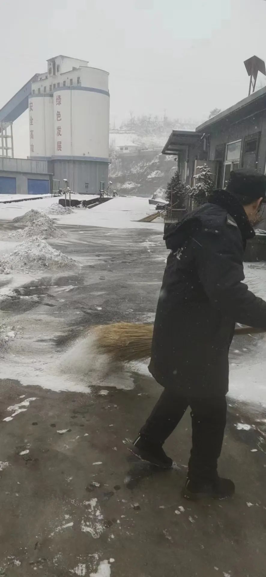 在集團(tuán)公司總部,大家齊心協(xié)力清掃積雪,道路上、臺(tái)階上大家忙碌的身影,成為雪中一道靚麗的風(fēng)景線?偨(jīng)理助理宋林兔現(xiàn)場指揮車輛有序轉(zhuǎn)移,經(jīng)過不懈的努力,道路漸漸地現(xiàn)出了“原貌”。