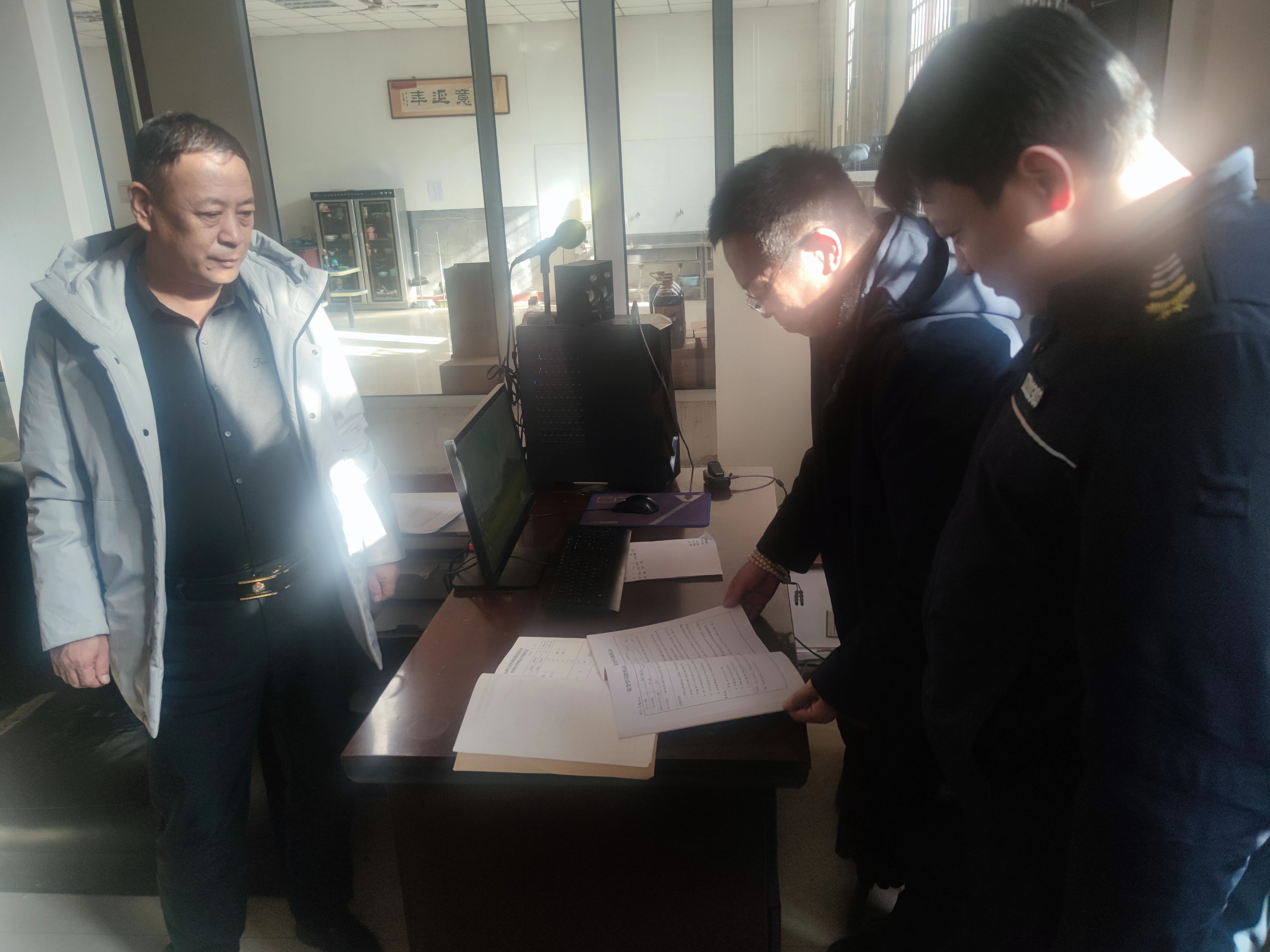 1月15日下午,集團(tuán)公司安全督導(dǎo)檢查組羅鵬生、趙補(bǔ)安等一行赴守押公司四大隊(duì)化北屯中隊(duì)開展安全檢查工作。大隊(duì)長楊貴文、副大隊(duì)長王玉江、中隊(duì)長趙紫陽及副中隊(duì)長葛建平全程配合。