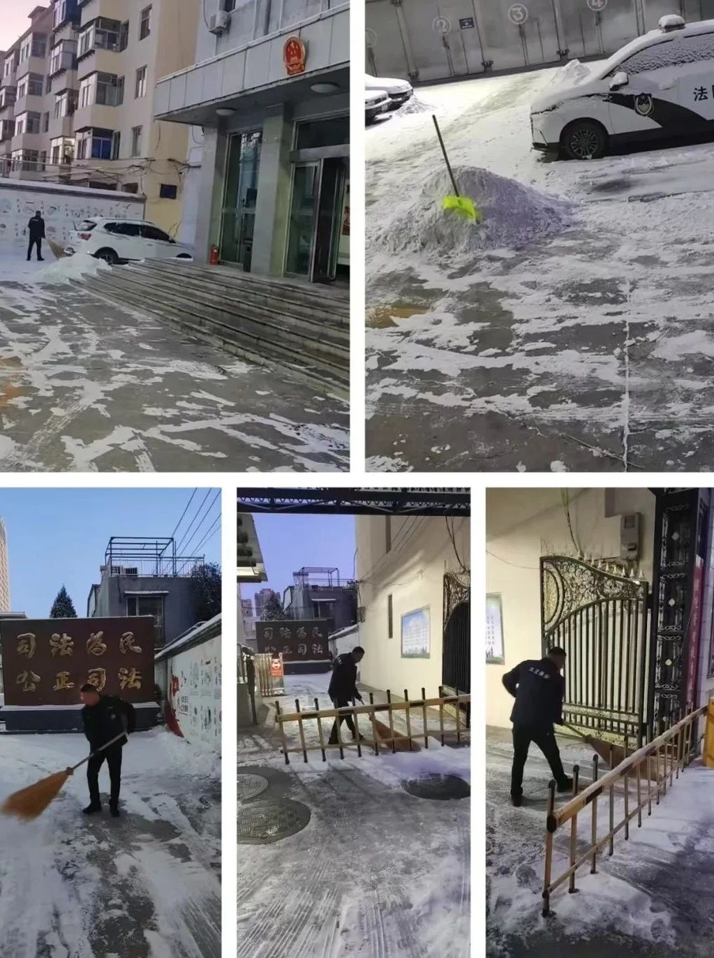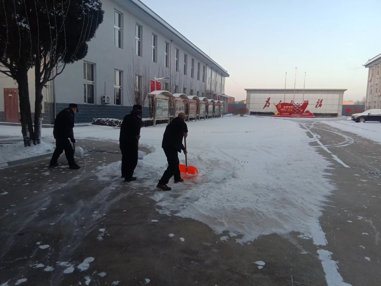 清掃積雪的工作看似簡單,卻充滿了挑戰(zhàn)。積雪已經(jīng)結(jié)成厚厚的冰層,路面濕滑,每一步都需要小心翼翼。盡管如此,保安隊伍從不畏懼嚴寒和困難,始終保持著高度的責任感,認真負責地完成任務(wù)。無論是周邊的道路,還是進出頻繁的停車場,哪里有積雪,哪里就有我們忙碌的身影。在大家的努力下積雪很快被清理干凈,確保了每條道路暢通無阻,為客戶單位提供了一個安全、便捷的環(huán)境,為市民的安全出行保駕護航。