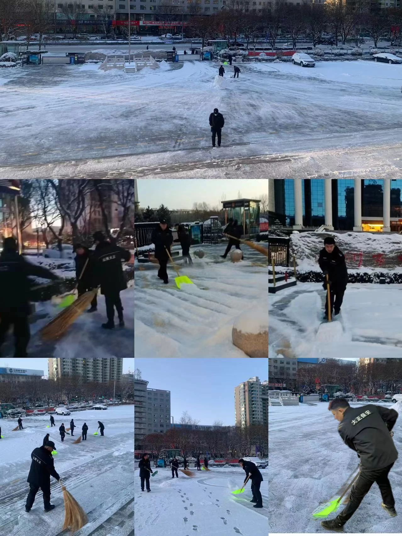 1月25日,忻州市迎來了新年的第一場大雪,整個城市銀裝素裹,美不勝收。然而,積雪覆蓋了道路與工作場所,給出行和工作帶來了不小的困擾。山西大正保安服務(wù)集團有限公司各駐勤點的保安隊伍積極行動,迅速清掃積雪,全力保障客戶單位和市民的出行安全。我們的職責不僅是保障客戶單位的安全,還要為市民創(chuàng)造整潔、安全的環(huán)境。