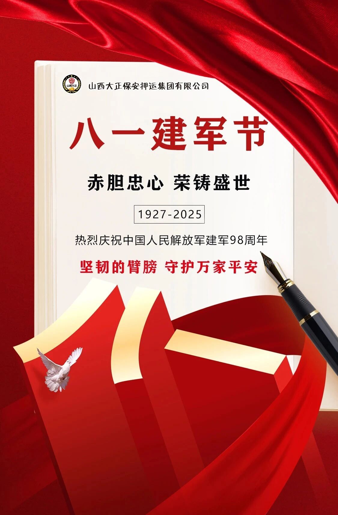 軍旗獵獵,初心如磐。為熱烈慶祝中國(guó)人民解放軍建軍98周年,傳承紅色基因,弘揚(yáng)優(yōu)良傳統(tǒng),進(jìn)一步增強(qiáng)退役軍人的榮譽(yù)感、歸屬感和幸福感。8月1日,山西大正保安押運(yùn)集團(tuán)有限公司組織召開(kāi)迎“八一”建軍節(jié)暨退伍軍人座談會(huì)。集團(tuán)公司黨委委員、副總經(jīng)理王明生,黨委委員邢春生及領(lǐng)導(dǎo)班子成員,機(jī)關(guān)、各子公司退役軍人員工代表和軍屬共計(jì)40余人齊聚一堂,共憶軍旅生涯,共話職責(zé)使命,共謀公司發(fā)展。