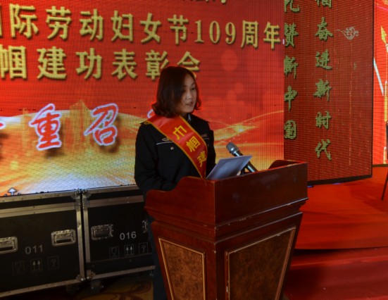 市總工會(huì)黨組成員、經(jīng)審委主任崔曉君和市婦聯(lián)黨組成員、副主席郭梅榮分別講話,她們向公司婦女同胞致以節(jié)日的祝福和親切的問候,對(duì)公司一年來女工工作給予充分的肯定,向受到表彰的先進(jìn)集體和先進(jìn)個(gè)人表示祝賀。希望公司婦女同胞要愛崗敬業(yè)、爭(zhēng)創(chuàng)一流、奮發(fā)有為,與公司同成長(zhǎng)、共進(jìn)步。同時(shí)要愛護(hù)身體,經(jīng)營(yíng)好家庭、教育好子女,孝敬好父母,在干事創(chuàng)業(yè)中書寫精彩人生,在崗位建功中彰顯巾幗風(fēng)采。
