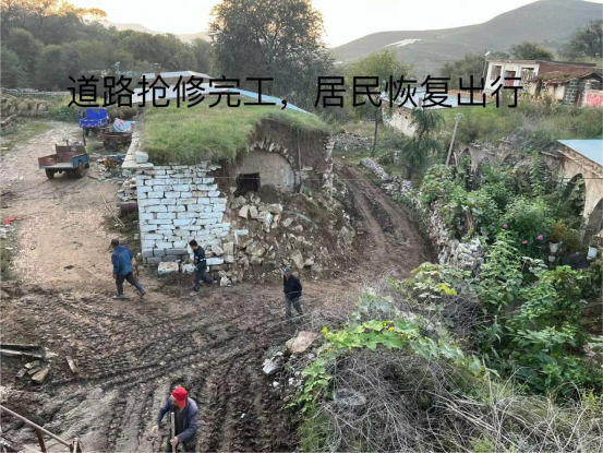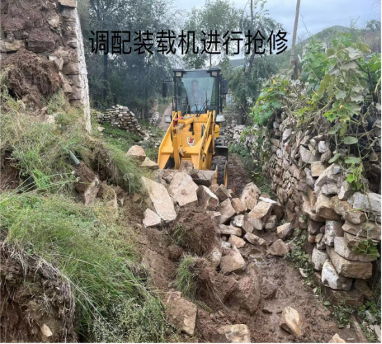 在搶修過程中,工作隊與村民們共同克服了惡劣天氣帶來的困難,裝載機的操作手精準地移除了坍塌的土石,而其他人員則協(xié)助清理現(xiàn)場,確保了搶修工作的順利進行。經過數(shù)小時的緊張勞動,破損的窯洞得到了妥善處置,村民們的生活出行秩序得以恢復。