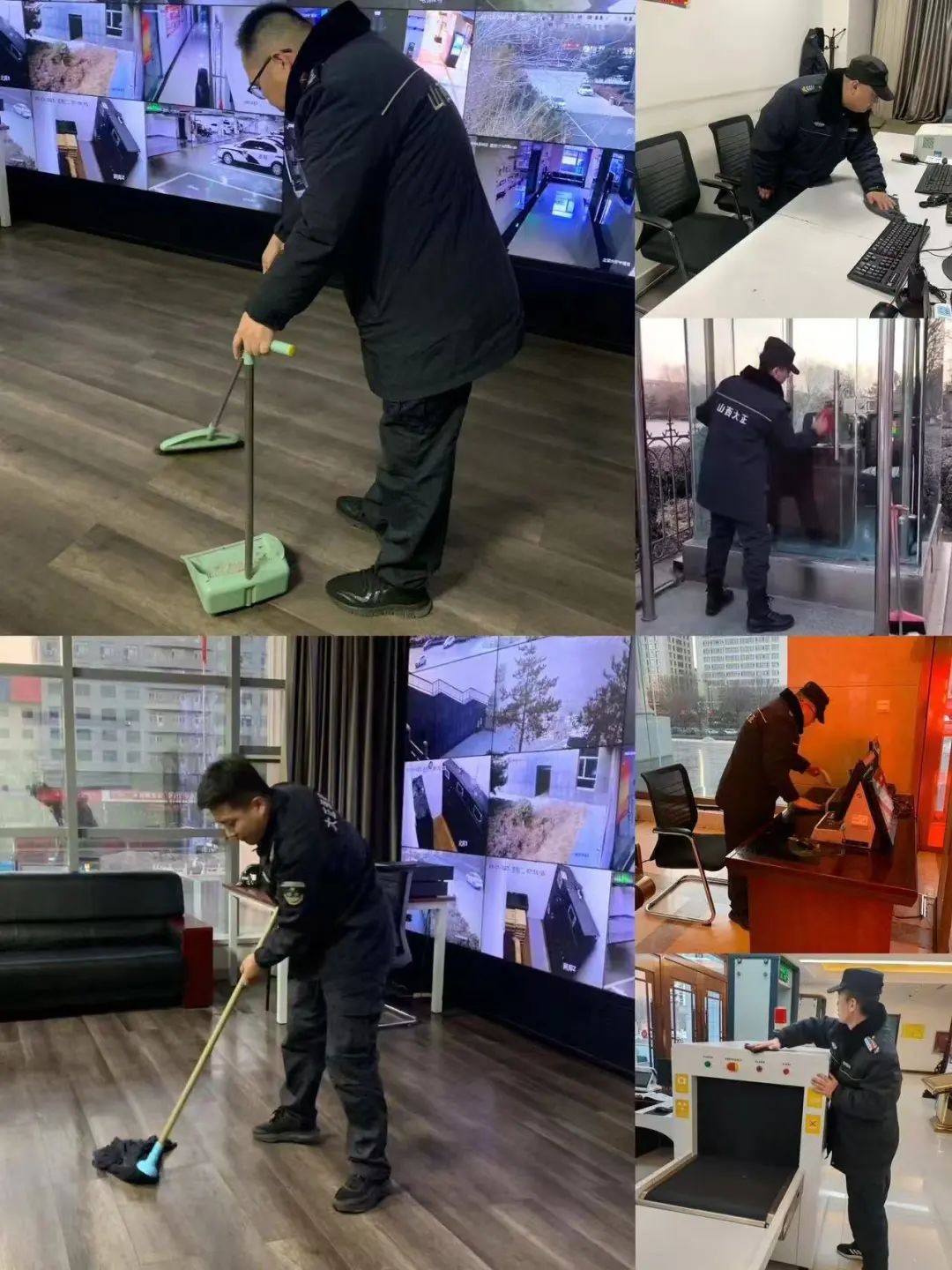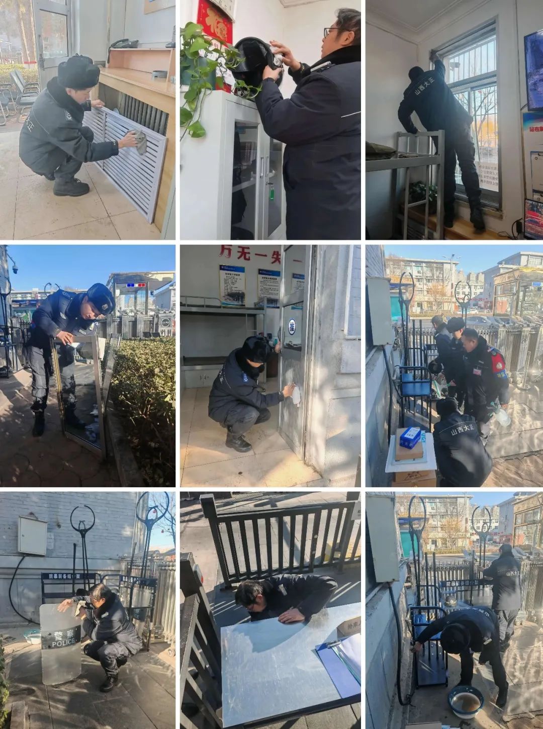 連日來,山西大正保安服務(wù)集團(tuán)公司各值勤崗點(diǎn)在保質(zhì)保量做好本職安保工作的基礎(chǔ)上,自覺從各自駐勤點(diǎn)綜合環(huán)境情況出發(fā),主動利用空余時間開展衛(wèi)生大掃除活動,著重對執(zhí)勤門衛(wèi)室、崗?fù)ぶ苓、窗戶窗臺、道桿道閘以及消防防暴器材等區(qū)域、設(shè)施進(jìn)行了清掃和整理。